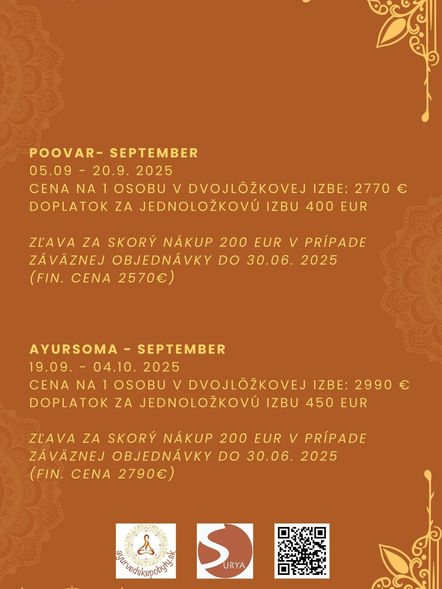 srdečne Vás pozývame aj na jeseň na naše tradičné ajurvédske pobyty do Indie.